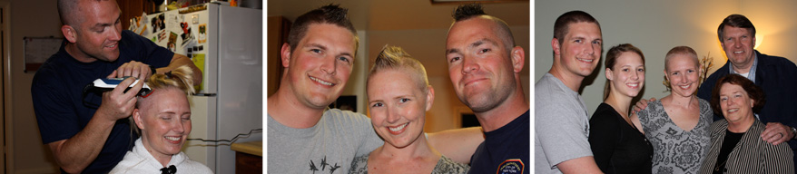 My whole life I’ve always been known for my naturally long blonde hair so, of course, I became quite attached to it, almost to the point of it defining me. I was always that girl with the beautiful blonde hair. It was that one thing I started to believe made me beautiful. When it came to losing my hair, that’s when the cancer became all too real. Part of what made me feel beautiful, what essentially had defined my beauty, I was about to lose. My hair started shedding about 3 weeks after I started chemo. At night, I found myself constantly waking up, scared to move my head, for fear that I would find chunks of hair lying on my pillow. Then one day while I was in the shower, I lost a huge chunk of hair and I just fell apart. When I got out of the shower and gently started combing my hair, all I was doing was combing it OUT… and again, I started crying. Even when you’re expecting it, there is still no way to actually prepare how you’ll feel when it happens. So, that night we shaved my head. My good friend, Zak, and my brother, Mark, decided they would shave their heads too. It turned out to be a memorable night of laughs and surprisingly no tears!